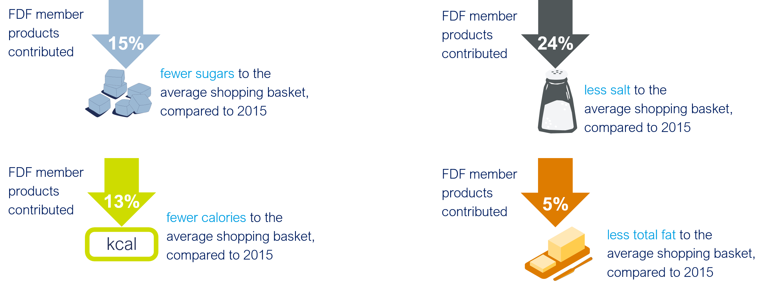 - 15% fewer sugars to the average shopping basket